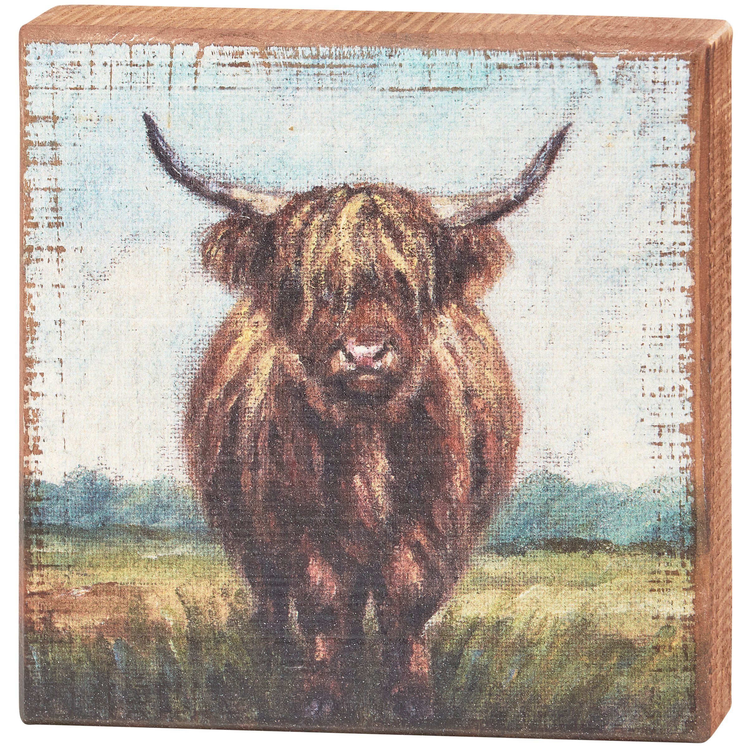 A charming wooden block sign from our Farmhouse displaying a calming hand painted design of a highland cow in a... Read more