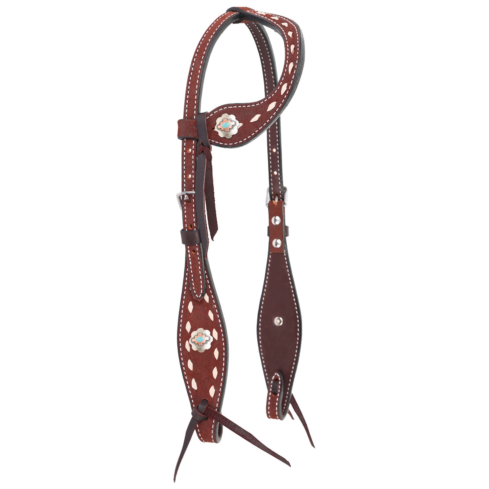 Chestnut pre-dye leather Cream buckstitch Custom copper aztec conchos Made in the USA. Read more