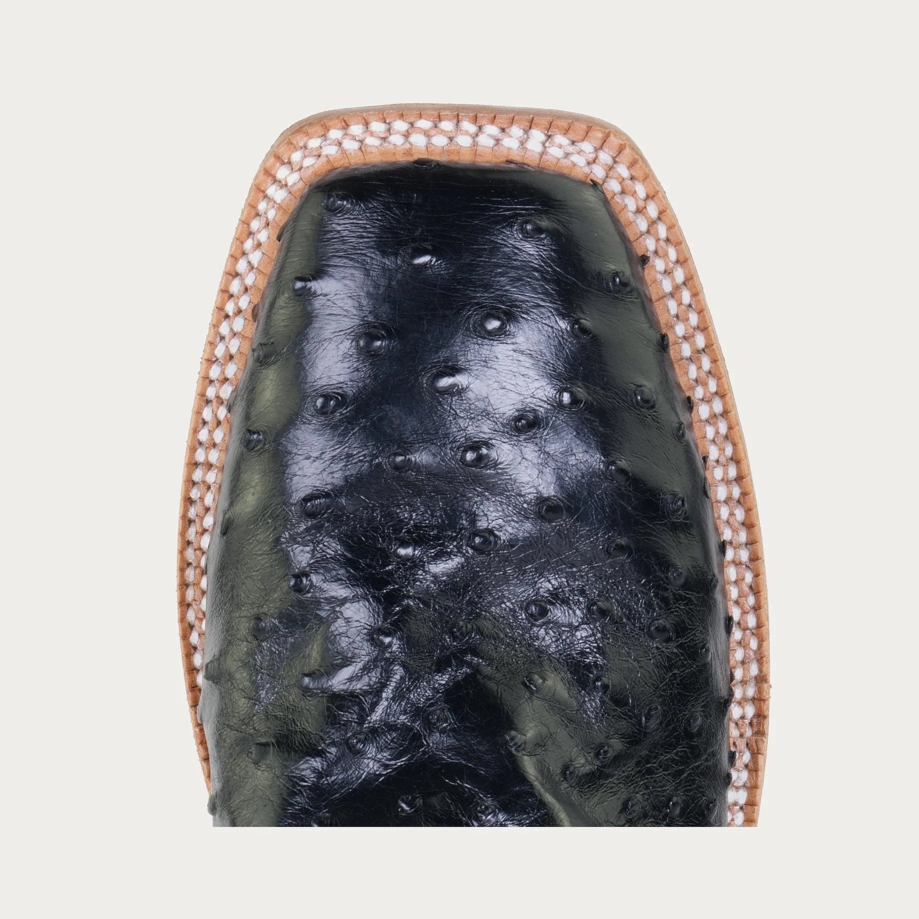 A skilled cowboy knows that true boldness comes with a refined, gentle touch. That’s why he’ll appreciate the striking style of this original vintage Hyer design expertly combined with luxurious full quill ostrich leather.