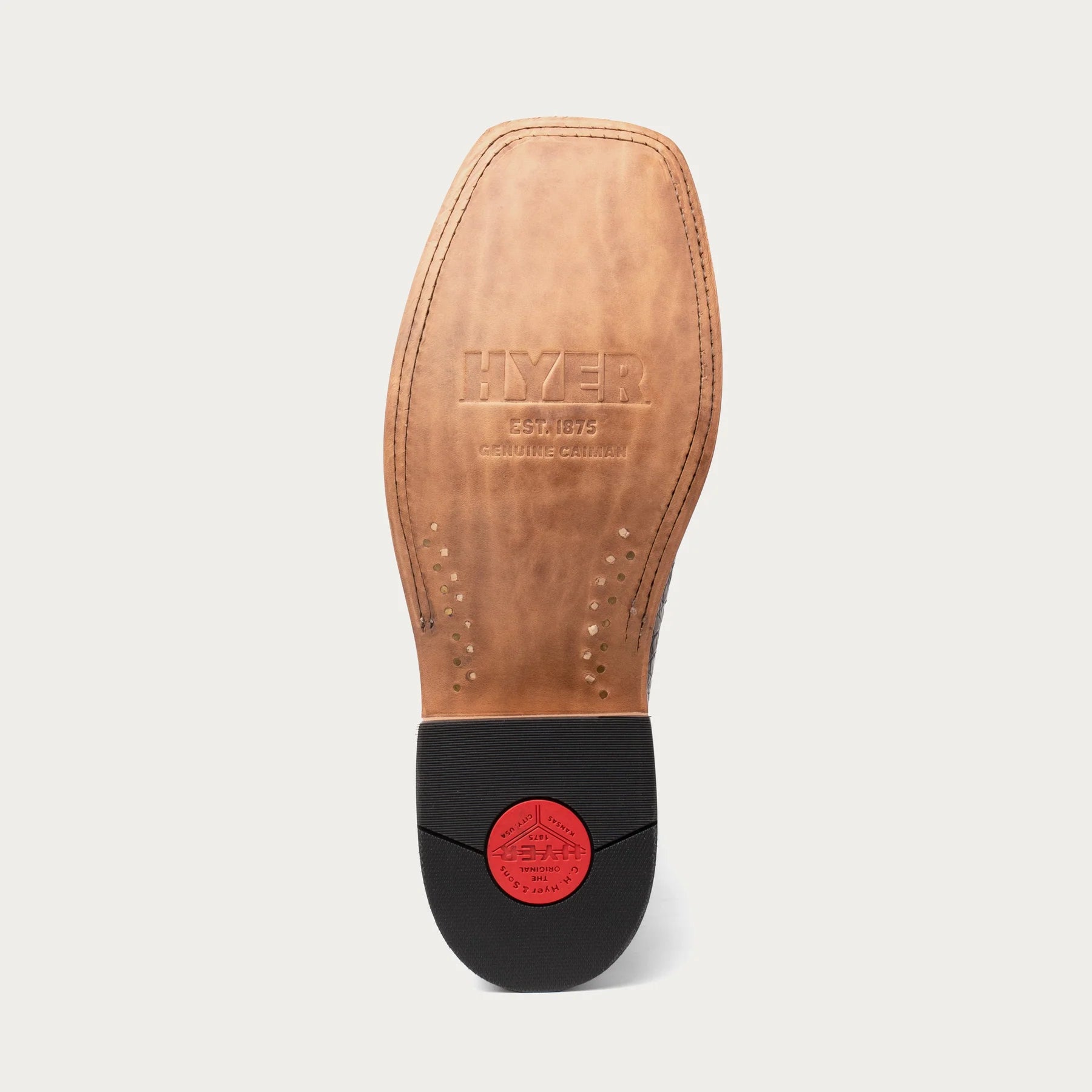 We’ve blended our founder’s signature "Olathe" stitch design with the rich texture of premium caiman crocodile and our popular broad square toe to craft a boot that commands attention and stands apart.