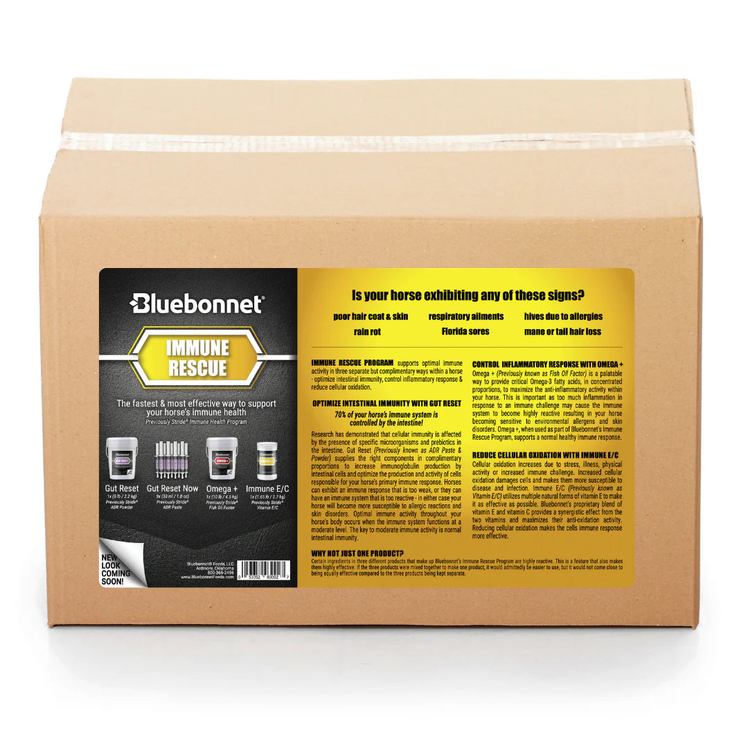 PACKAGING UPDATE: *(Formerly Stride Immune Health Program). This slight tweak emphasizes the product’s role in providing targeted, immediate support when your horse’s immune system needs it most.