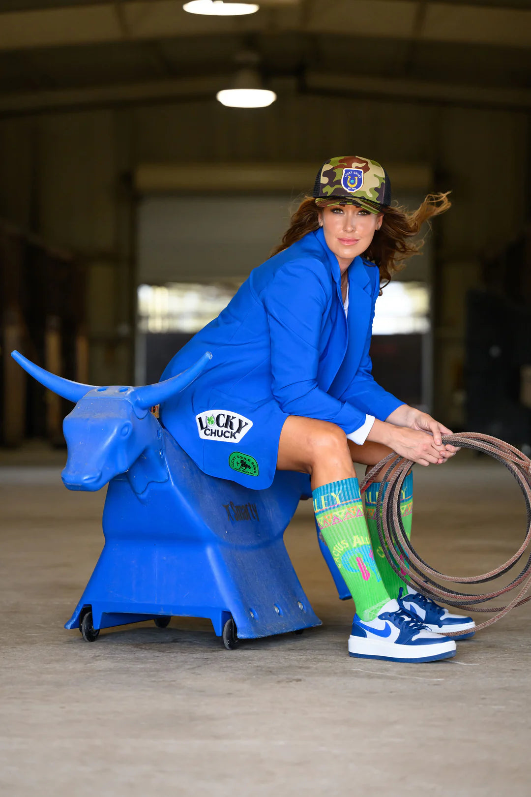 Under the creative vision of head cowgirl Lorinda Van Newkirk, Lucky Chuck® Performance Socks deliver on both style and functionality. These riding essentials are tall enough to protect your calves, stay up all day, and never cut off circulation. Plus, they soften with every wash without wearing out—giving you even more chances to rock your lucky socks every day.