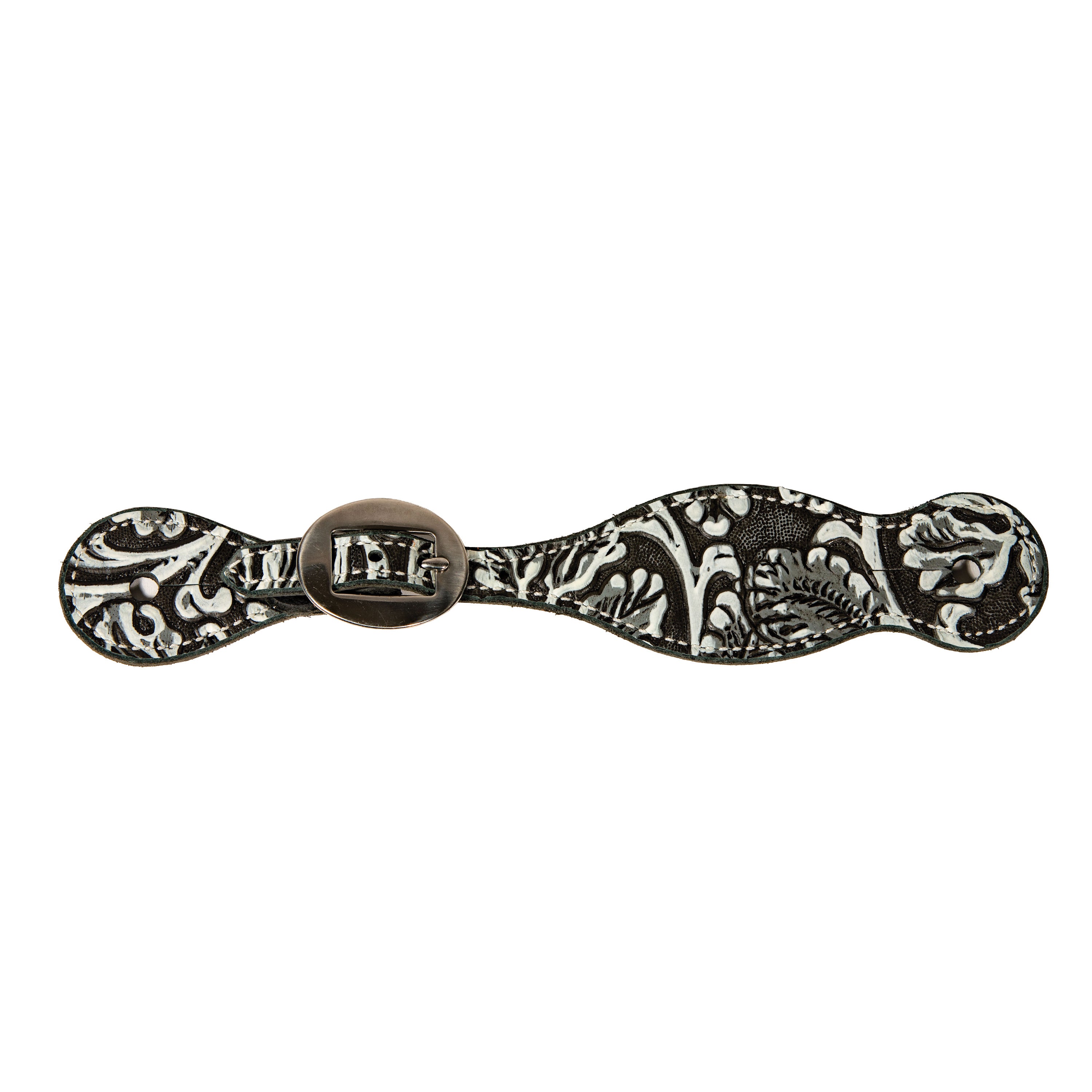 Ladies Black & White Paisley Spur Straps. Black latigo leather with black and white paisley pattern. 5/8" black and silver... Read more
