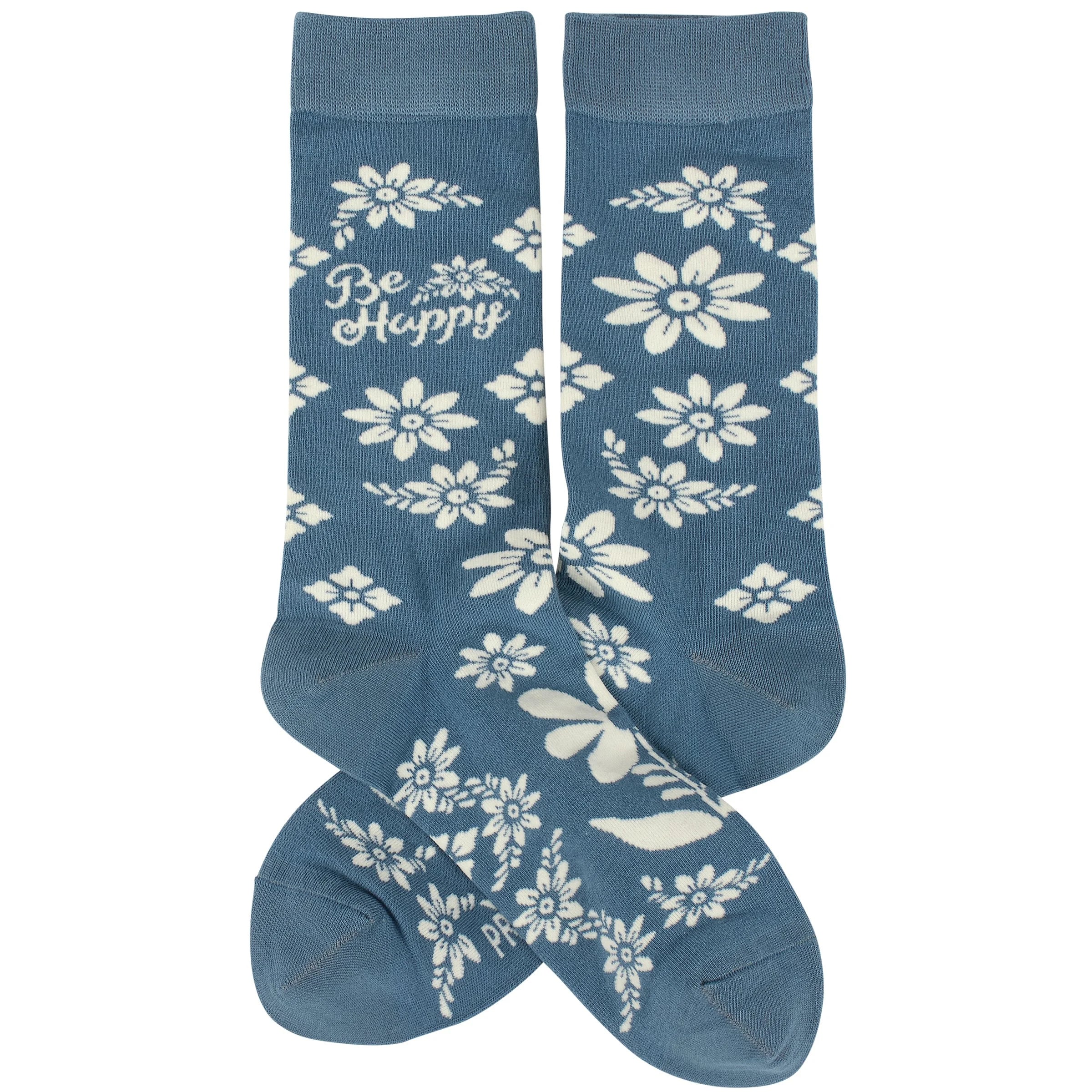 "Be Happy." Flower designs and sentiment are replicated from original hand illustrated art. These giftable socks are made with a... Read more