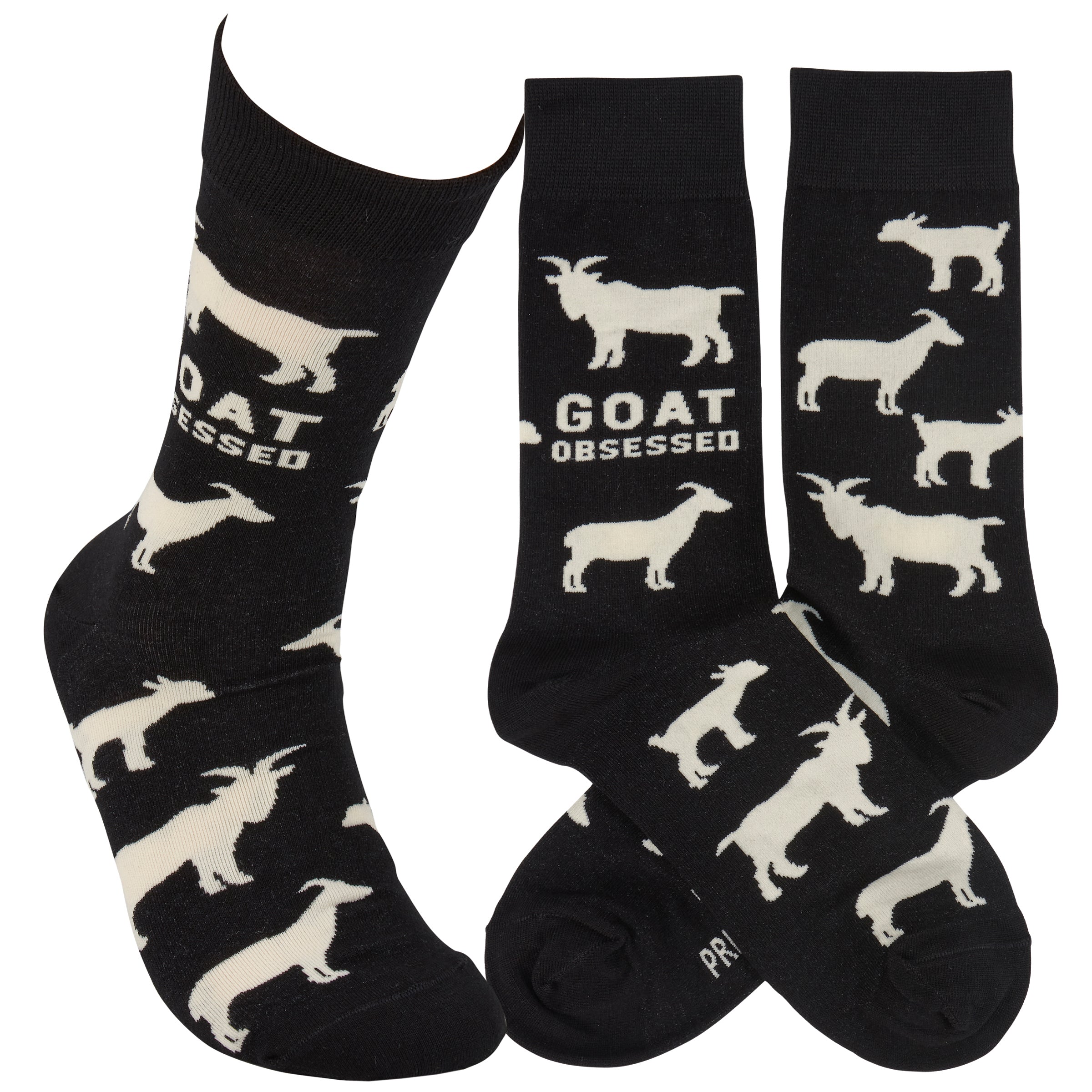 "Goat Obsessed." Socks feature a one size fits most design made with cotton, nylon, and spandex. Our Goat Obsessed socks... Read more