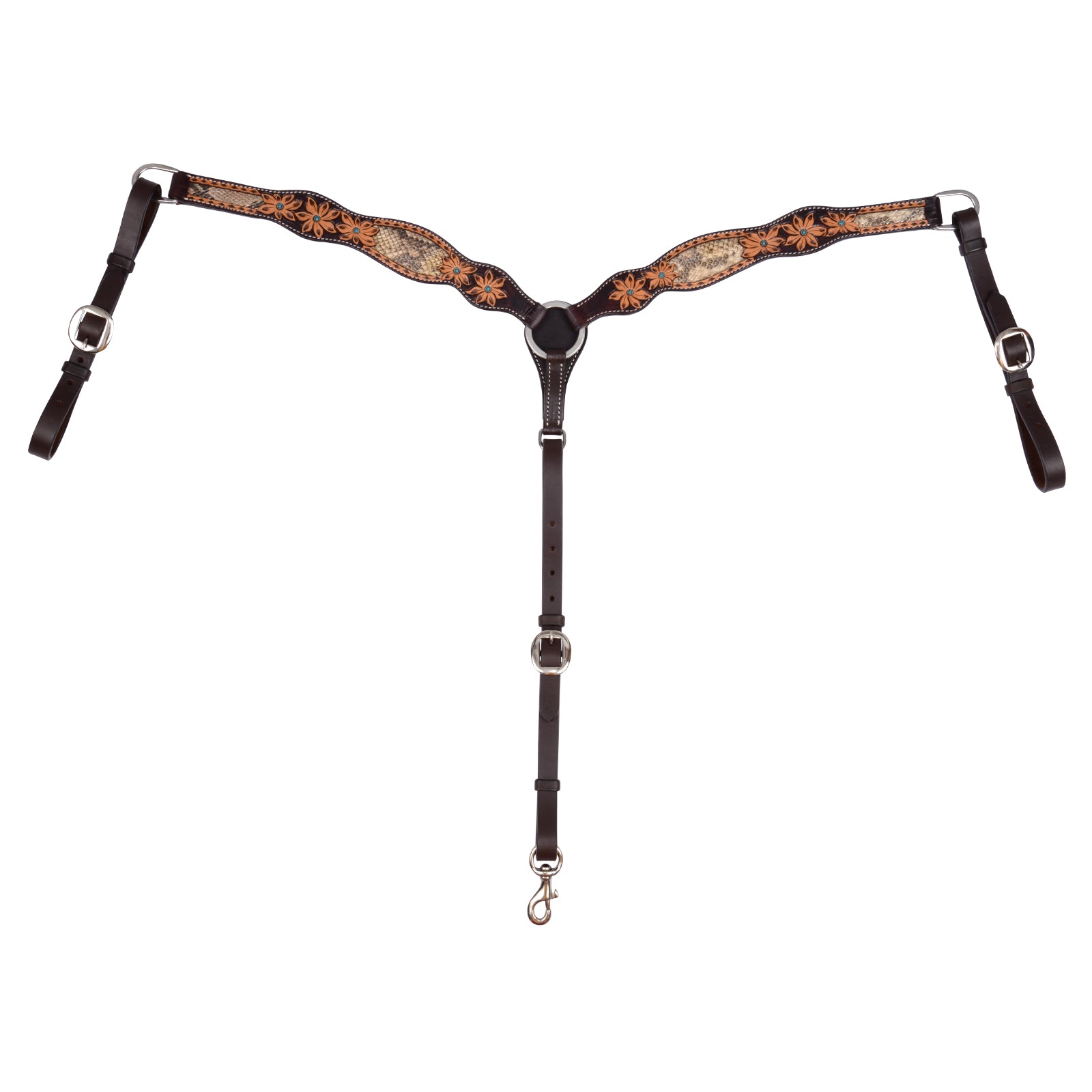 The Python Pass breast collar is sure to stun, with hand-tooled floral details on rich vintage leather framing python inserts.... Read more