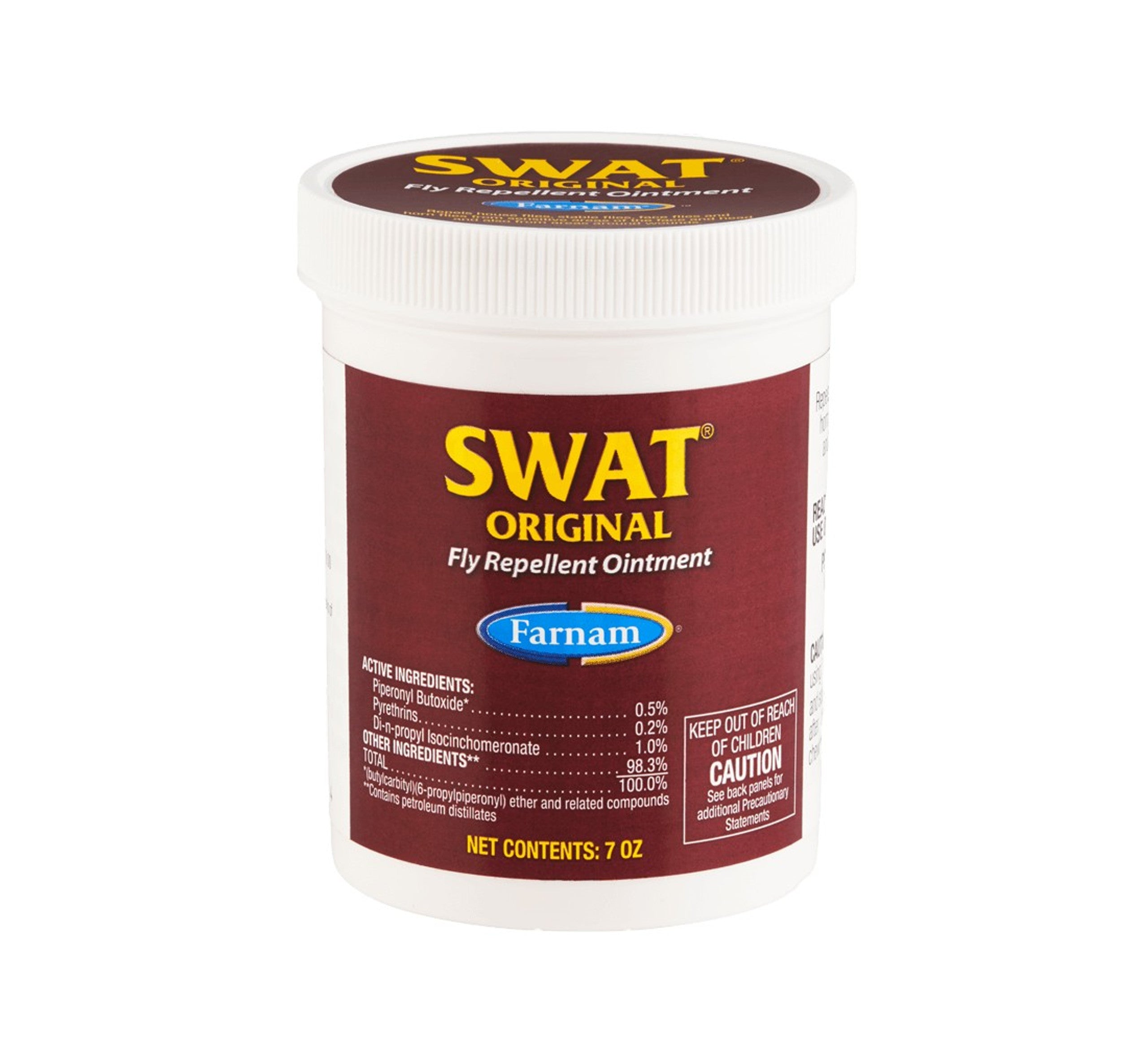 Effective for hours, Swat, in this pink formula, provides visible, added protection from flies to areas on your horse that need more coverage than a spray can provide. SWAT Original Pink Fly Repellent Ointment is one of those tried-and-true horse care products you need to have at the ready!
