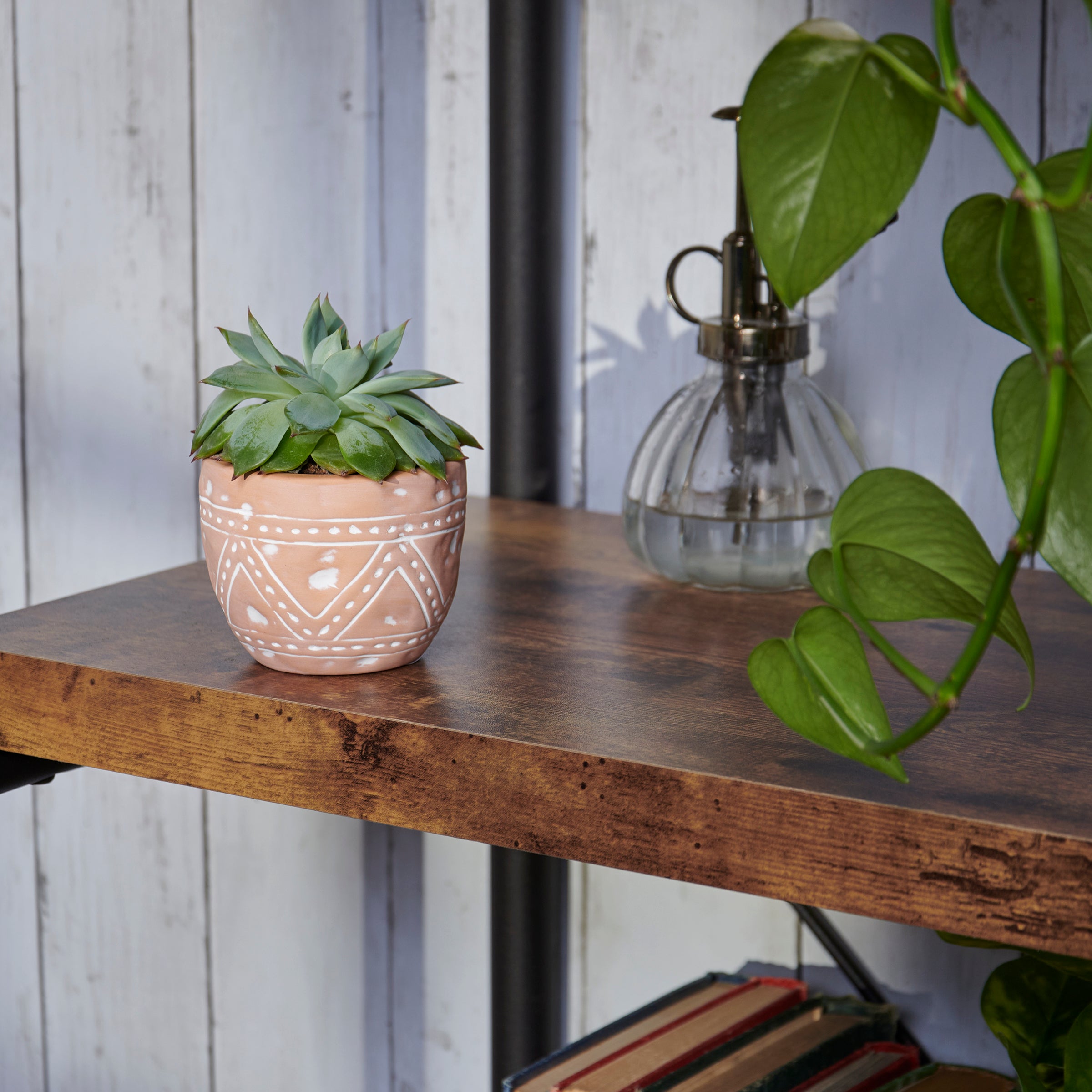 A terracotta pot displaying bare ceramic with debossed western inspired patterns painted white to accent design. Our Western pot features opening... Read more
